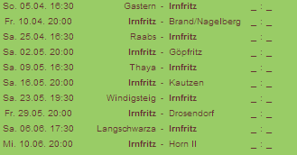 Die Vorbereitungsspiele werden auf der Startseite angezeigt, den genauen Trainingsplan gibt es hier trainingsplan-fruhjahr-2009 zum ausdrucken.