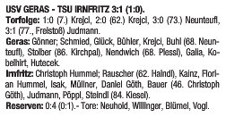 Nachdem der Tscheche die Stiftsstädter in Halbzeit ein in Führung schoss, verbuchten auch die Irnfritzer die eine oder andere Chance, allein: Ein Treffer blieb ihnen verwehrt. Thomas Strondl: „Auch wenn ich mich wiederhole: Die Chancenauswertung bleibt ein altes Leid“. Besser machten es da die Hausherren: Einen Konter mit idealem Zuspiel von Galia auf Thomas Neunteufl schloss Letzterer zum 3:0 ab ein sehenswerter Freistoß-Kracher von Judmann war nur noch für die Sta<tistik von Bedeutung. Quelle NÖN
